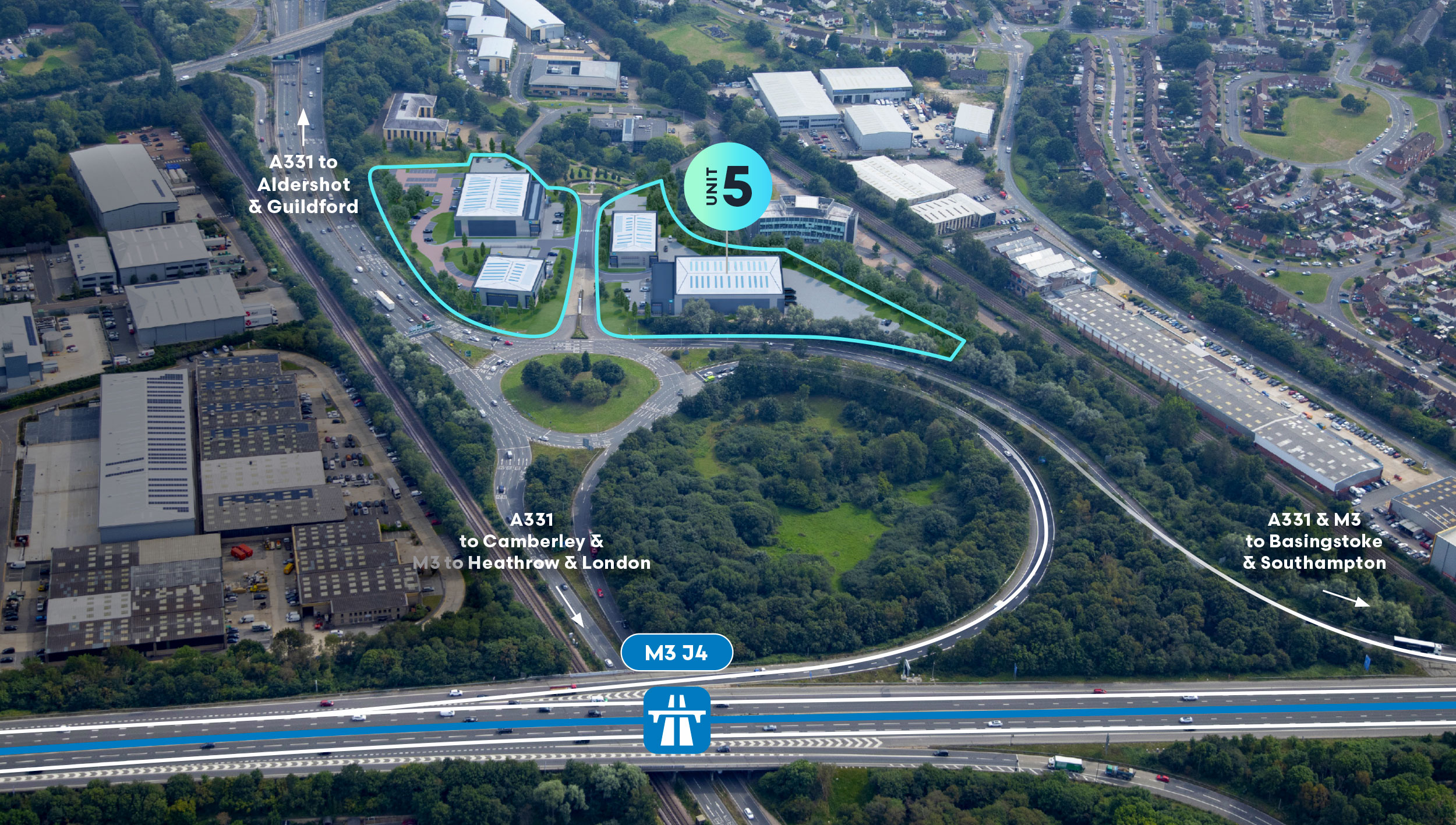 Frimley Business Park is prominently located adjacent to Junction 4 of the M3, providing excellent links to the M25, A3 and the national motorway network. The Park is also conveniently placed for both Frimley and Farnborough railway stations, offering regular services to Guildford, Reading, Gatwick Airport and London Waterloo.